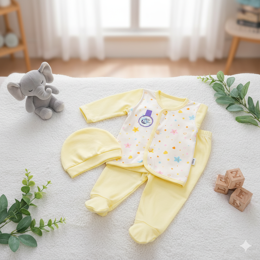 This soft cotton jabla set is specially designed to keep newborns comfortable throughout the day. The 3-piece pack includes a […]